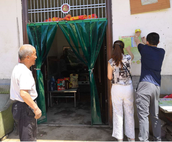 西安水建集團工會主席樊琳杰為幫扶對象張貼疾病預防措施